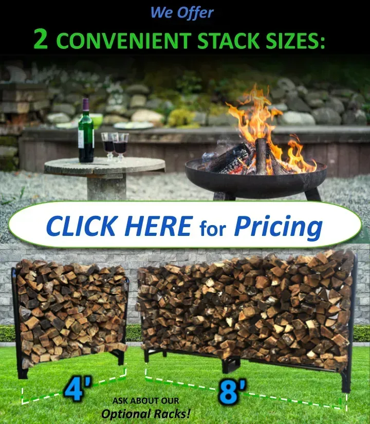 As the region's main supplier, we create our firewood in a bulk process that consistently delivers the best experience for the greatest number of people. These balanced characteristics include a desirable amount of smoke, sound, sent, and burn time. Our pieces range from 14"-22" long, with an average stick length of 17.5" and no custom ordering options are offered.